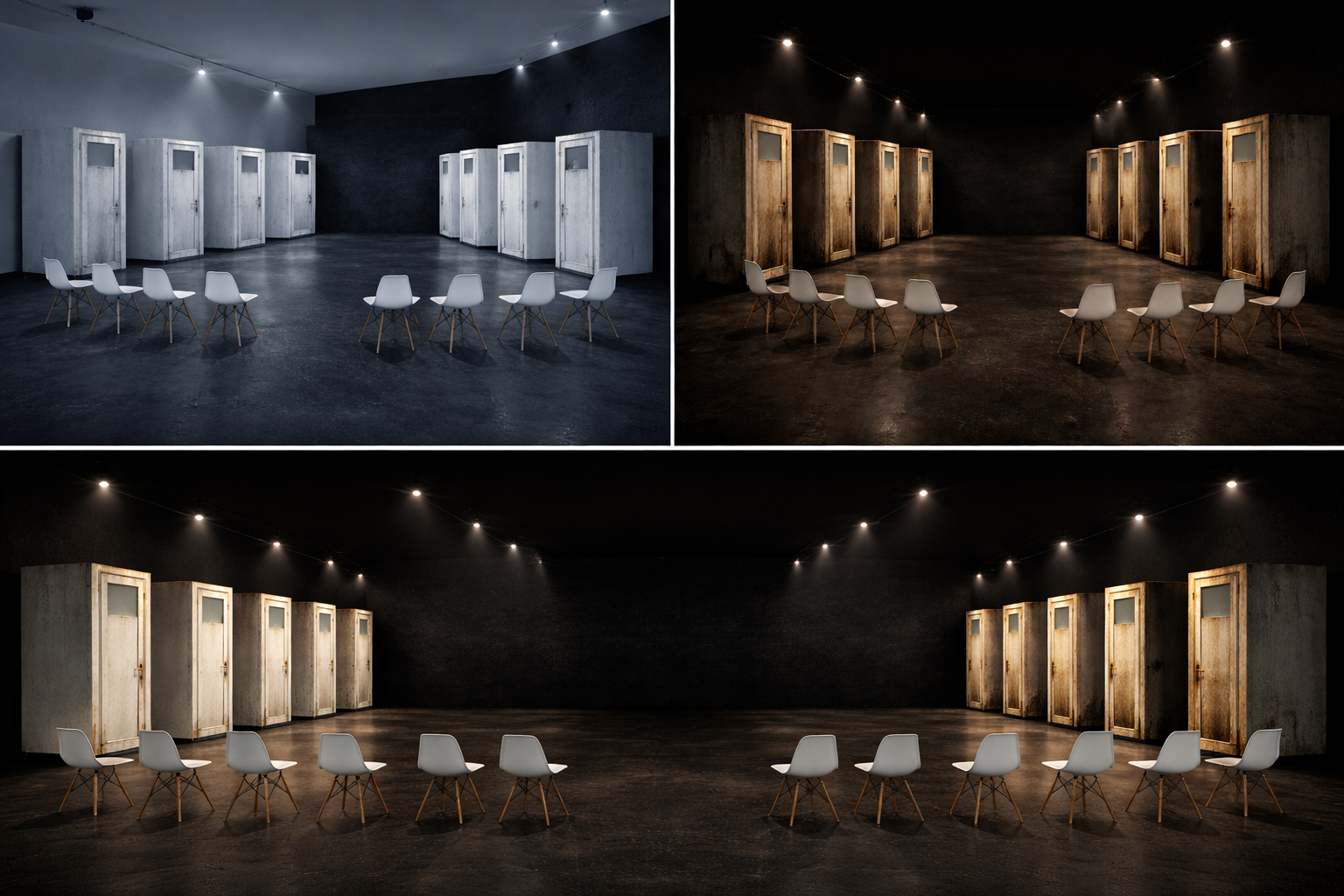 The One-Way Mirror Stall – Participants feel watched and exposed, mirroring the scrutiny and judgment survivors face when speaking up.
